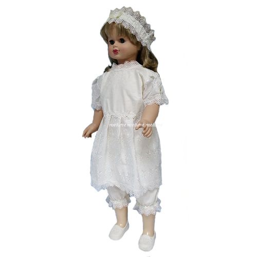 1. Платья с V-образным вырезом, по линии талии отрезное. Кокетка из набивного сатина, юбка из сатина с шитьём. Платье украшено кружевом по горловине, рукавчикам и низу.